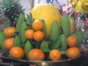 «Пять фруктов» (mâm ngũ quả, мам нгу куа) — фрукты, символ богатства, традиционно помещаемые на алтарь предков[16].