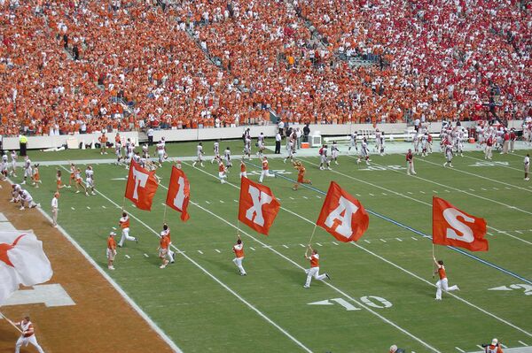 Университет Техаса традиционно считается локомотивом студенческого футбола[60]. К началу сезона 2007 года Longhorns были третьей командой в списке за всю историю наблюдений по количеству побед и набранным очкам. Наибольшего успеха команда добилась под руководством Даррелла Рояла, выиграв три национальных чемпионата 1963, 1969, 1970 годов. Четвёртый титул они завоевали при тренере Мэке Брауне в 2005 году обыграв доселе непобедимую команду университета Южной Калифорнии.