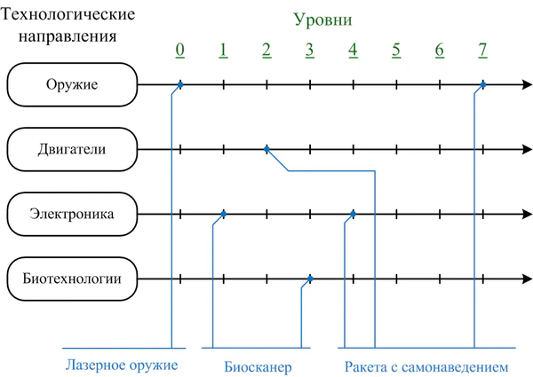 Необходимость введения технологического древа и его особенности во многом определяются типом разрабатываемой игры и её свойствами. Так, при создании шутера от первого лица может ставиться вопрос о необходимости исследования игроком более мощного оружия, либо же его можно будет просто найти на игровых уровнях. Новое оружие может быть получено сразу в окончательном виде либо в результате совершенствования уже имеющегося. Это может определяться, исходя из опыта игрока, который может быть как заинтересован в подобных игровых механиках, так и просто бегать по уровням и уничтожать врагов[20]. Следующим важным шагом является определение начального уровня развития, которое может зависеть от сеттинга (например, в Sid Meier’s Civilization это примитивные доисторические технологии, в то время как в более поздней игре той же серии Sid Meier’s Alpha Centauri действие происходит в будущем)[6]. Сложность выбора между слишком многочисленными возможностями в начале игры может отпугнуть игроков, и поэтому важно правильно этот выбор дозировать, не допуская, чтобы он на ранних этапах стал критической ошибкой для игрока. Во время последующего проектирования могут различать определяющие и несущественные технологии — первые являются необходимыми для прохождения некоторой миссии, но для её открытия нужно предварительно открыть несколько других технологий. Во время тестирования проектируемой игры в неё могут добавляться подсказки игроку, помогающие достичь ключевых элементов, но в то же время у него остается свобода выбора. Создаваемое технологическое древо может потребовать игрового баланса, когда нужно сделать так, чтобы игроку всегда были доступны для изучения технологии, позволяющие пройти миссии. В противном случае игроки будут разочарованы, когда по достижении уровня не смогут его пройти из-за подобных проблем проектирования. Примером решения является предоставление игроку достаточного количества ресурсов в игровом мире[21].