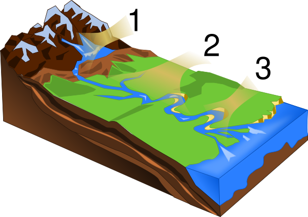 Верхнее течение образовывается в вершинах гор при скоплении воды из-за подземных вод и осадков, и оттуда река берёт своё начало.