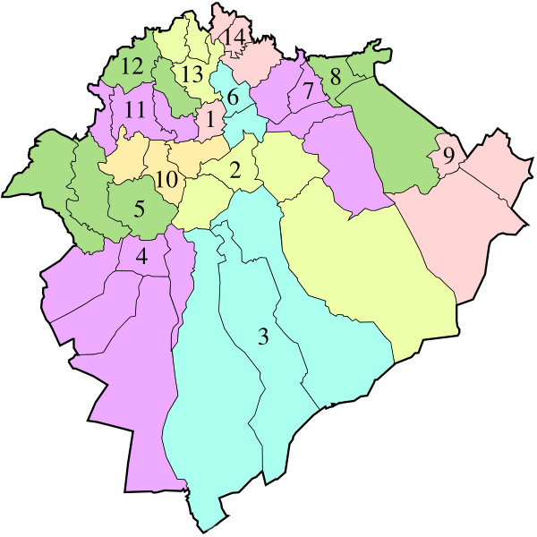 Административно вилайет разделен на 14 округов и 42 коммун: