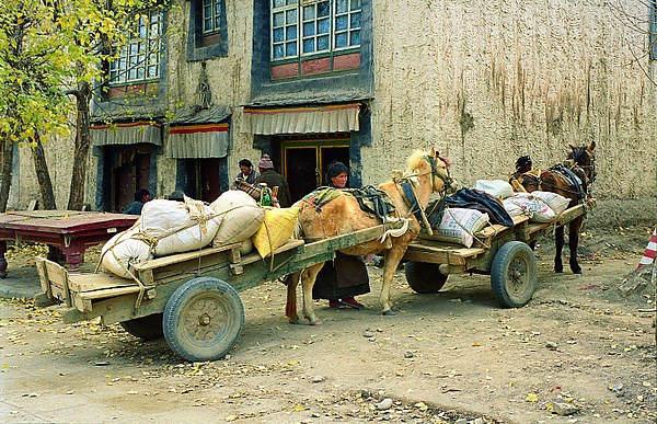 Кирпичный чай готовят по методам, лишь отдалённо напоминающим китайские или цейлонские. Когда вода закипает, в неё крошат большую горсть чая и дают настояться 5–10 минут, пока настой не станет почти чёрным. Затем добавляют щепотку соли; тибетцы всегда кладут в чай соль, а не сахар. Мне говорили, что иногда добавляют немного соды, чтобы придать напитку розоватый оттенок, но я этого не видел в Сикане. Очень редко тибетцы пьют чай без масла. Дома настой выливают в большую деревянную маслобойку, процеживая через сито из тростника или конского волоса. Затем кладут большой кусок масла, и после энергичного перемешивания напиток переливают в огромный медный чайник и ставят на жаровню, чтобы он оставался горячим. В путешествии маслобойку обычно не берут, поэтому каждый наливает чай в деревянную чашку, кладёт кусочек масла из корзины, размешивает пальцем и, наконец, выпивает[17].