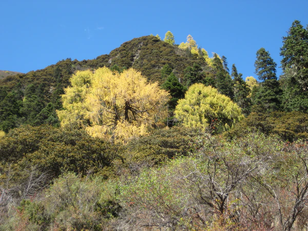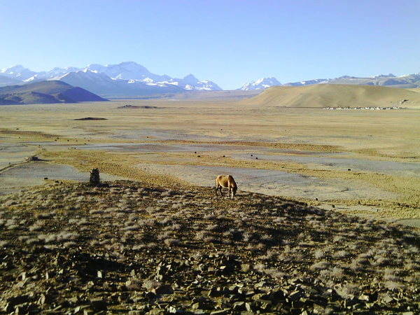 На западе и севере нагорья растительность скудна, преобладают пустынные низкорослые растения с глубокой корневой системой, вдоль русел рек и ручьёв растут осока, облепиха, курильский чай, тибетская кобрезия, мятлик, овсянка. В долинах рек естественная растительность чередуется с полями злаков (ячмень, овёс). На востоке и юге имеются также леса и кустарники[1]. Из растений также: терескен, танацетум, эфедра, мирикария, реомюрия, полынь, астрагал, акантолимон и другие[7].