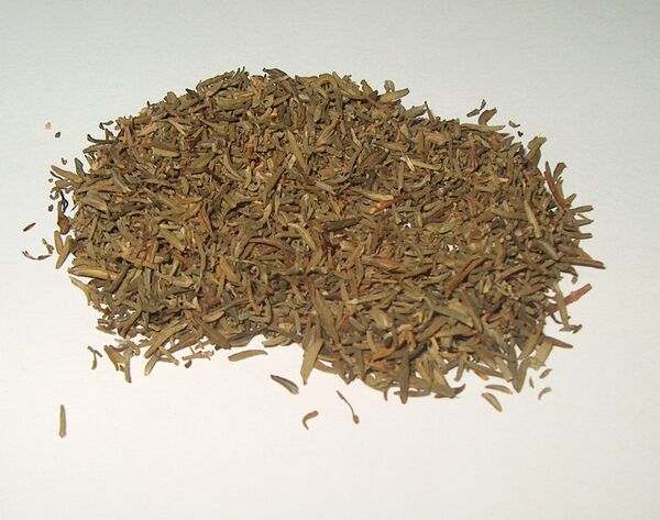 Тимья́н (чабрец) — пряность, обладающая сильным приятным ароматом и острым пряным вкусом, по аромату напоминает тмин и анис[1]. В качестве специи используют свежие или сушёные ароматные листья тимьяна обыкновенного.