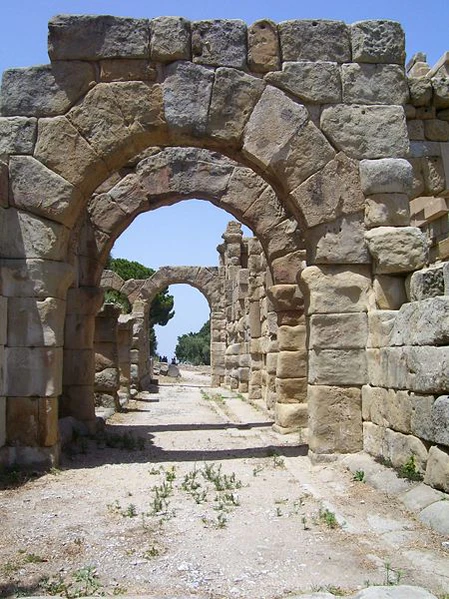 Основная часть города построена на холме с сильным уклоном с юго-запада на северо-восток[4]. Внутри городской черты раскопки 1950—1960-х годов показали наличие централизованной планировки, в рамках которой возводились с IV в. до н. э. греческие дома, а затем, на их же фундаментах, — римские и византийские[2]. Сеть улиц составляют широкие мощёные декуманы шириной 8 м, протянувшиеся на разных высотах с северо-запада на юго-восток через всю ширину плато (раскопаны как минимум два, однако несомненно существование третьего)[4], уходящие круто вверх на холм кардо шириной до 3 метров (раскопано не менее 15[2]) пересекаются под правильными прямыми углами с интервалом 30 м. По центральной оси кардо проложены сточные канавы. Жилые кварталы располагались террасами от подножия к вершине холма. Дома эллинистического типа постройки, с комнатами, построенными вокруг перистиля с колоннами, полы выложены заливной кладкой или, реже, полихромной мозаикой. В районе нижнего декумана располагались таберны и склады. Ближе к верхнему декуману находились публичные здания — небольшие термы и рынок[2].