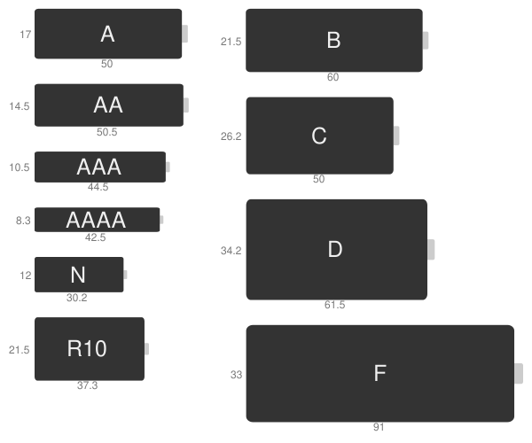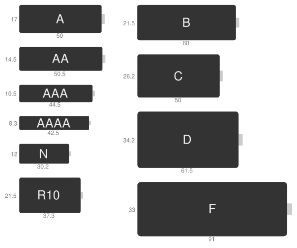 Типоразмеры гальванических элементов