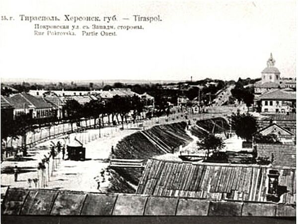 Город начала XX века занимал центральную часть современного Тирасполя. Покровская улица (ныне 25 Октября) была основной, здесь располагались административные и торговые учреждения, дома обеспеченных горожан[36]. На северо-западной окраине размещались воинские казармы, на северо-восточной — железнодорожный вокзал. В то время в городе насчитывалось 31 тыс. жителей[37].