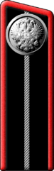 в) Классные и медицинские чины горного ведомства, а равно ведомства путей сообщения и публичных зданий, полицейские чиновники и другие, имеющие полукафтаны военного покроя, сохраняя оные, носят на воротнике и обшлагах вместо шитья и петлиц галуны, сообразно чинам их.