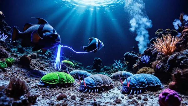 Животный мир Тихого океана по видовому составу в 3—4 раза богаче, чем в других океанах, особенно в тропических водах. В индонезийских морях известно более 2 тысяч видов рыб, в северных морях их насчитывается лишь около 300. В тропической зоне океана насчитывается более 6 тысяч видов моллюсков, а в Беринговом море их около 200. Для фауны Тихого океана характерными особенностями являются древность многих систематических групп и эндемизм. Здесь обитают большое количество древних видов морских ежей, примитивные роды мечехвостов, некоторые очень древние рыбы, не сохранившиеся в других океанах (например, иордания, гильбертидия); 95 % всех видов лососёвых обитают в Тихом океане. Эндемичные виды млекопитающих: дюгонь, морской котик, сивуч, калан. Для многих видов фауны Тихого океана свойственен гигантизм. В северной части океана известны гигантские мидии и устрицы, в экваториальной зоне обитает самый крупный двухстворчатый моллюск тридакна, масса которого достигает 300 кг. В Тихом океане наиболее ярко представлена ультраабиссальная фауна. В условиях огромного давления, низкой температуры воды на глубине более 8,5 км обитает около 45 видов, из которых более 71 % эндемики. Среди этих видов преобладают голотурии, ведущие очень малоподвижный образ жизни и способные пропускать через желудочно-кишечный тракт огромное количество грунта, единственного источника питания на этих глубинах[19].