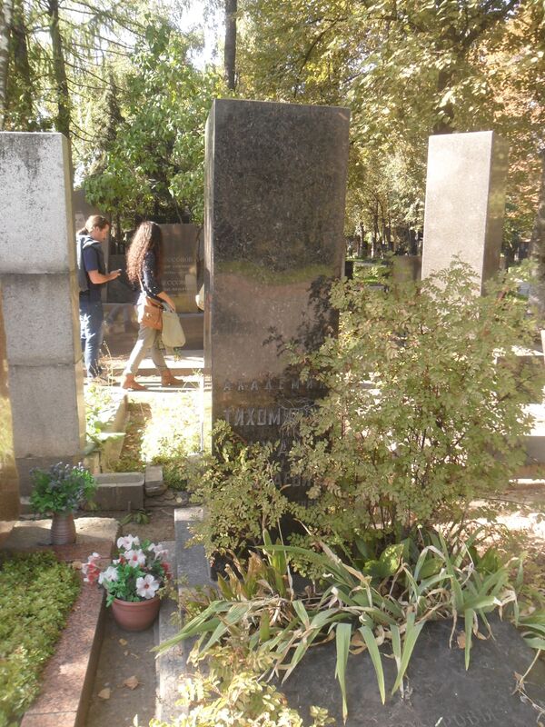 Часы досуга академик Тихомиров посвящал «жанру обиходного стихотворства — смеси разнообразной по тональности лирики с пародийностью» (С. О. Шмидт)[4]. Похоронен на Новодевичьем кладбище Москвы.