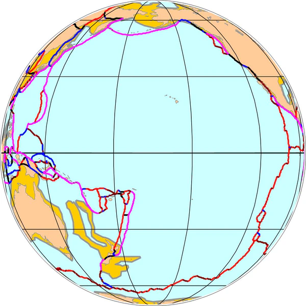 На севере и западе Тихоокеанская плита погружается в зонах субдукции различного типа, формируя Алеутский жёлоб на севере и Марианскую впадину на западе.