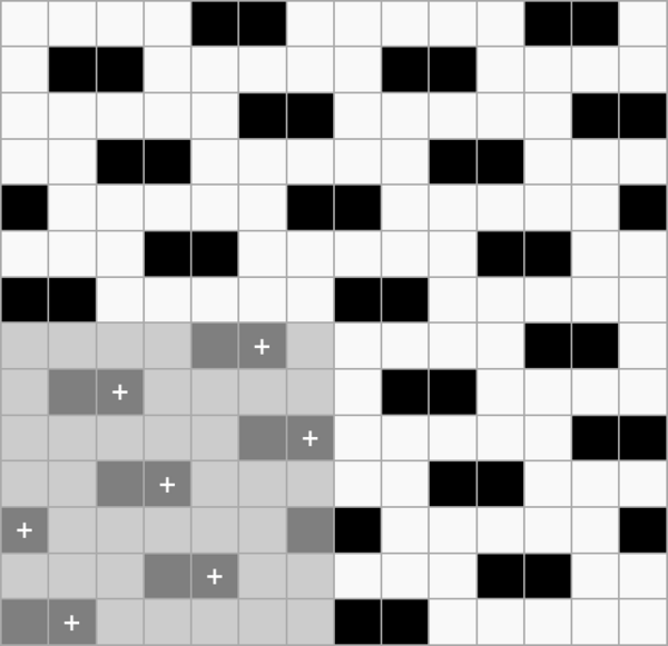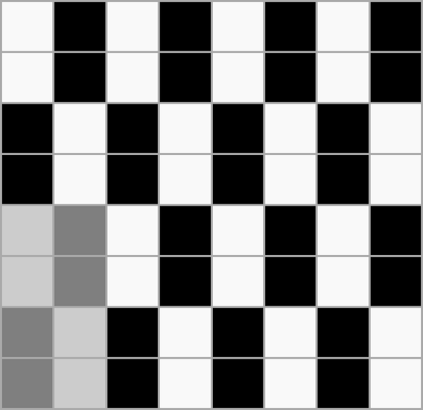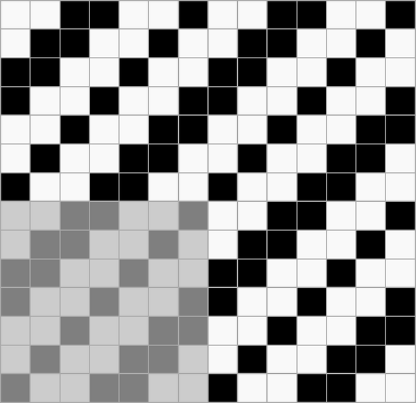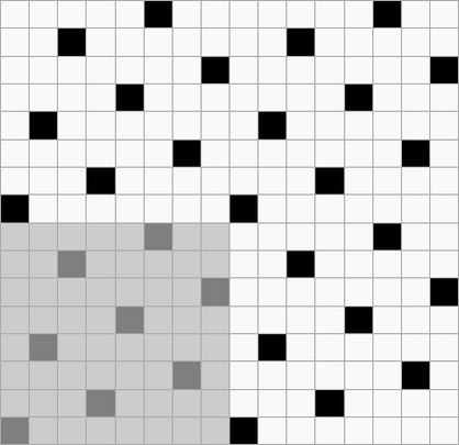 Ткань, в которой нити основы и утка образуют достаточно крупные квадраты, расположенные в шахматном порядке[1] Обозначается дробью. В числителе — степень усиления в направлении основы и утка первого одиночного основного перекрытия в раппорте полотняного переплетения, в знаменателе — степень усиления в направлении основы и утка второго одиночного основного перекрытия в раппорте полотняного переплетения.