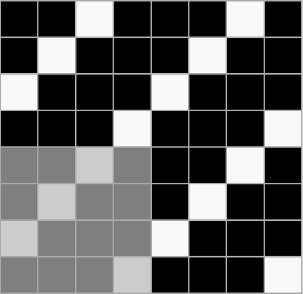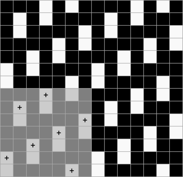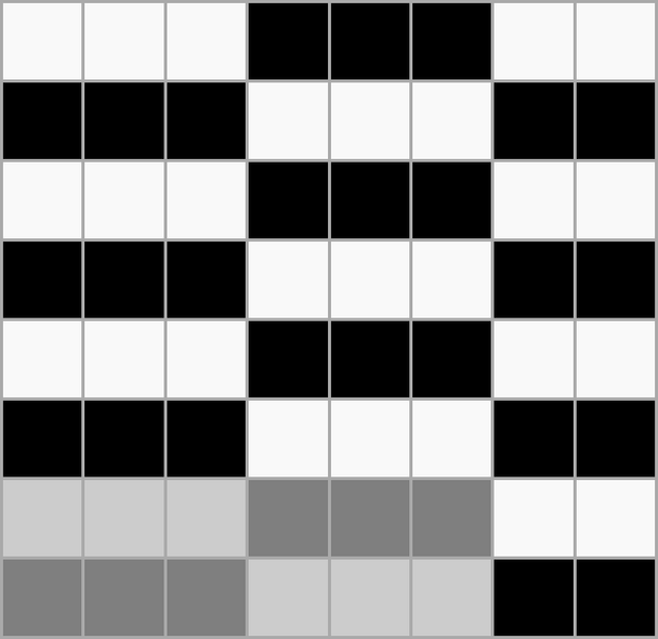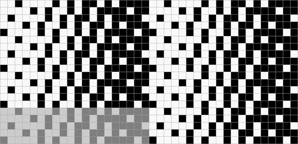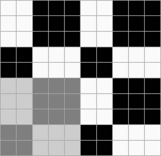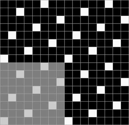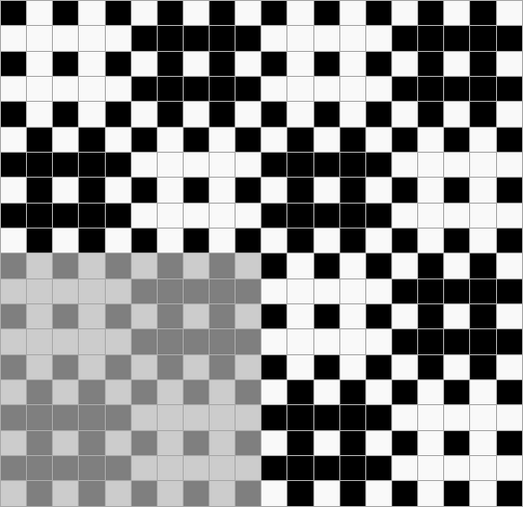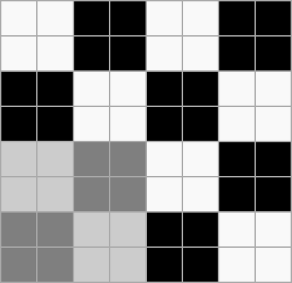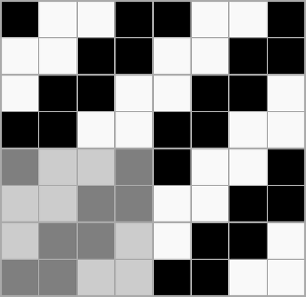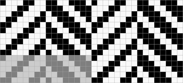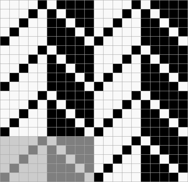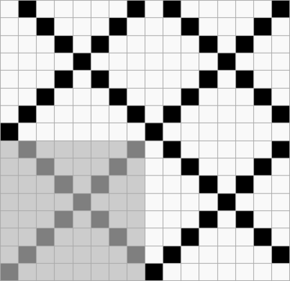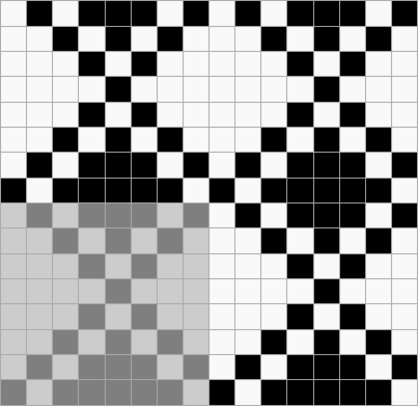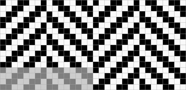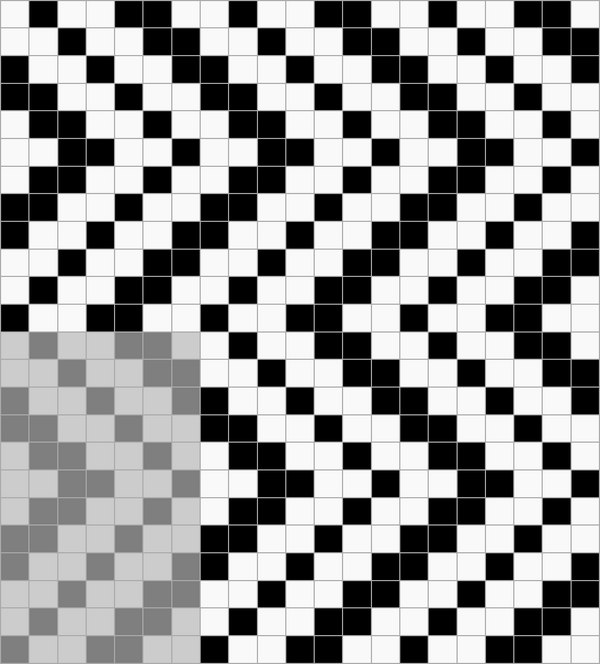 Ткацкие переплетения графически принято обозначать схемой, состоящей из клеток двух цветов, расположенных рядом друг с другом в определённом порядке. Основные нити располагаются в вертикальных рядах клеток, уточные — в горизонтальных. Тёмные клетки означают основные перекрытия, светлые — уточные.