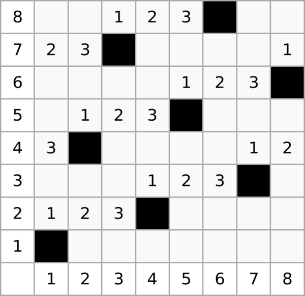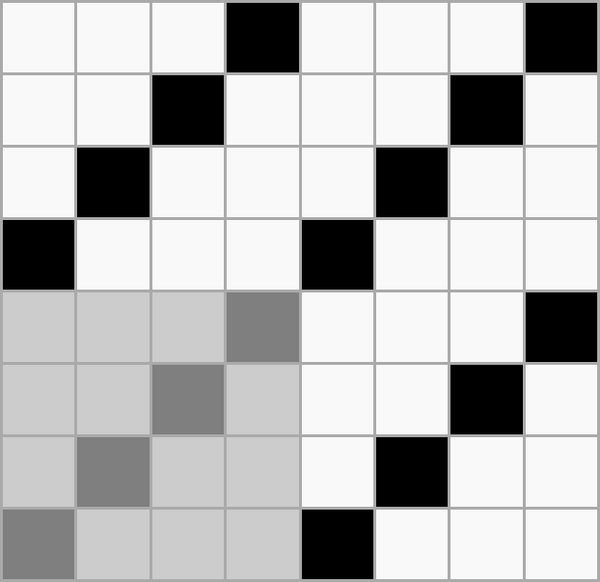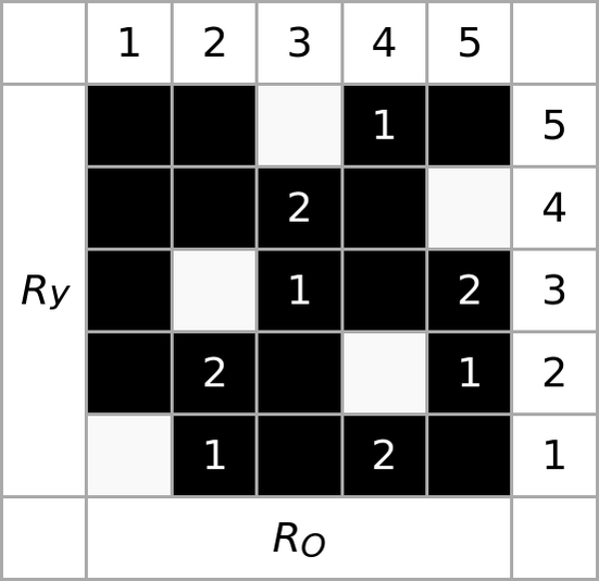 Счёт нитей основы идёт слева направо, нитей утка — снизу вверх.