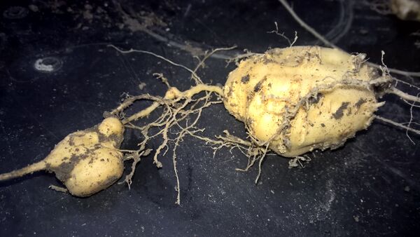 На каждом низко нависающем над землёй участке надземного побега и на всех подземных побегах формируется цепочка клубней размером 2—8 см, несъедобные. Так как из каждого клубня следующей весной вытягивается новый побег и под землёй снова вырастают соединённые в виде цепочки клубни, то растение в течение нескольких лет занимает довольно большую площадь (до 10—12 м²), образуя густую и быстро увеличивающуюся в объёме группу.