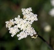 Зонтиковидные соцветия на концах ветвей и верхушке стебля, с 8—16 неодинаковыми лучами, 4—8 см в диаметре. Цветки мелкие, белые, реже розовые; лепестки обратнояйцевидные, длиной около 1,5 мм.