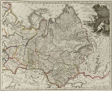 На карте Тобольской Губернии (из 16 уездов) из издания «Российский атлас из сорока трёх карт состоящий и на сорок одну губернию Империю разделяющий» (Вильбрехт, 1800)[4] показаны: граница Тобольской губернии и ее уездов, населенные пункты, монастыри, зимовья, крепости, прииски, соляные и рыбные промыслы, маршруты плаваний Малыгина (1734, 1735), Скуратова (1734, 1735), Овцына (1735), Муравьева (1737), Павлова (1737), Розмыслова (1768), место зимовки голландских кораблей в 1596. Заглавие на карте в художественном картуше с рисунком сцены охоты, символов горнозаводского производства, аллегории реки Обь — девы с урной[3][4].