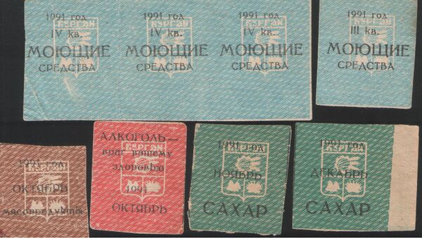 - К 1990 году система карточного распределения продуктов питания добралась и до Москвы, появились талоны на сахар, водку, табачные товары. Продажа большей части других продуктов питания велась строго лимитированно по так называемым "визитным карточкам покупателя"[72].