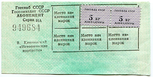 Кроме розничной продажи существовала подписка на готовящиеся к изданию дефицитные книги. Она осуществлялась на собрания сочинений известных и не очень авторов, на энциклопедии — примерно так же, как на дефицитные товары, но сроки получения в данном случае были меньше. Иной раз подписка на книги осуществлялась в форме лотереи при огромном скоплении желающих испытать судьбу.