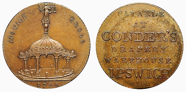- Conder, James. An arrangement of Provincial Coins, tokens, and medalets issued in Great Britain, Ireland, and the colonies, within the last twenty years, from the farthing to the penny size.. — First. — Ipswich, England : G. Jermyn, 1798.