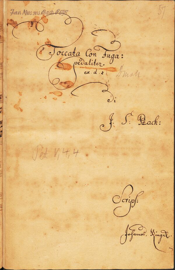 В рукописи Рингка нет отдельного нотоносца для педальной партии, что было обычным явлением в XVIII веке (ноты, которые нужно играть на педали, обозначались буквой «p»). Во всех более поздних печатных изданиях органной партитуры BWV 565 партия для педали пишется на отдельном стане. Также особенностью рукописи Рингка является то, что в ней верхний нотоносец записан с использованием сопранового ключа, тогда как в поздних печатных изданиях всегда пишется скрипичный ключ.