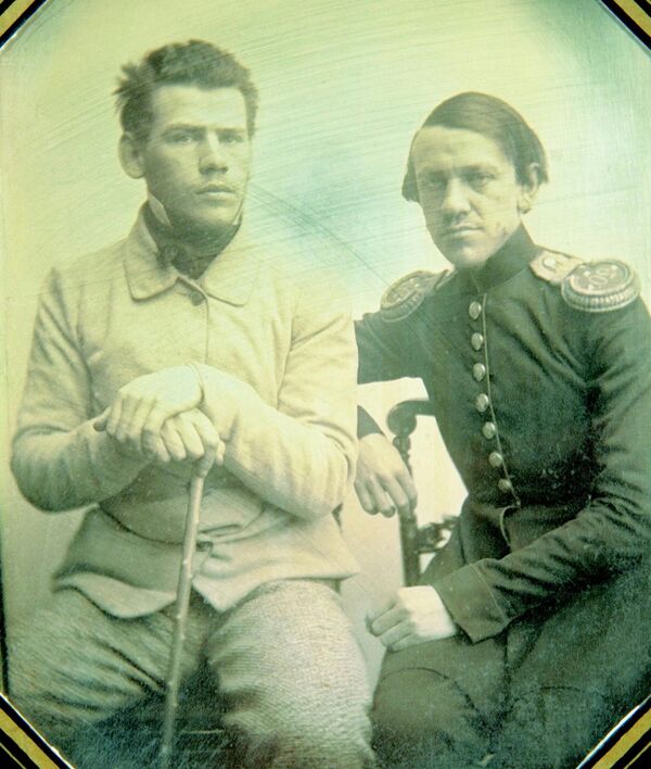 Зимой 1850—1851 годов начал писать «Детство». В марте 1851 года написал «Историю вчерашнего дня». Через 4 года после того, как он оставил университет, в Ясную Поляну приехал служивший на Кавказе брат Льва Николаевича Николай, который пригласил младшего брата присоединиться к военной службе на Кавказе. Лев согласился не сразу, пока крупный проигрыш в Москве не ускорил окончательное решение. Биографы писателя отмечают значительное и положительное влияние брата Николая на юного и неопытного в житейских делах Льва. Старший брат в отсутствие родителей был ему другом и наставником[29].