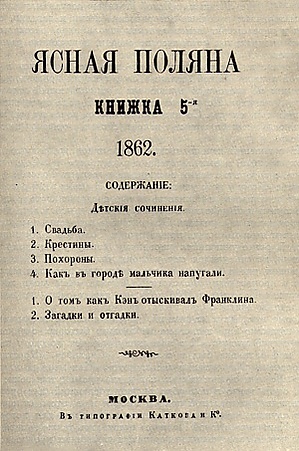 С 1862 года Толстой стал издавать педагогический журнал «Ясная Поляна», где главным сотрудником являлся он сам. Не испытывая призвания издателя, Толстой сумел выпустить только 12 номеров журнала, последние из которых появились с отставанием в 1863 году[56]. Помимо статей теоретических, он написал также ряд рассказов, басен и переложений, адаптированных для начальной школы. Соединённые вместе, педагогические статьи Толстого составили целый том собрания его сочинений. В своё время они остались незамеченными. На социологическую основу идей Толстого об образовании, на то, что Толстой в образованности, науке, искусстве и успехах техники видел только облегчённые и усовершенствованные способы эксплуатации народа высшими классами, никто не обратил внимания. Мало того: из нападок Толстого на европейскую образованность и «прогресс» многие вывели заключение, что Толстой — «консерватор»[13].