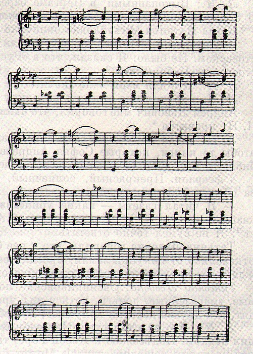 Любимыми композиторами Толстого были Бах, Гендель и Шопен. Развитию любви Толстого к музыке содействовало и то, что во время поездки в Петербург в 1848 году он встретился в весьма мало подходящей обстановке танцкласса с даровитым, но сбившимся с пути немцем-музыкантом, которого впоследствии описал в повести «Альберт». В 1849 году Лев Николаевич поселил у себя в Ясной Поляне музыканта Рудольфа, с которым играл в четыре руки на рояле. Увлёкшись в то время музыкой, он по нескольку часов в день играл произведения Шумана, Шопена, Моцарта, Мендельсона. В конце 1840-х годов Толстой в соавторстве со своим знакомым Зыбиным сочинил вальс, который в начале 1900-х годов исполнил при композиторе С. И. Танееве, сделавшем нотную запись этого музыкального произведения (единственного сочинённого Толстым)[27]. Вальс звучит в фильме «Отец Сергий», снятом по повести Л. Н. Толстого[28].