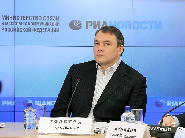 Пётр Оле́гович Толсто́й (род. 20 июня 1969, Москва, РСФСР, СССР) — российский политический деятель, журналист, продюсер и телеведущий. Заместитель председателя Государственной Думы Федерального собрания Российской Федерации с 5 октября 2016 года[2]. Секретарь Московского регионального отделения партии «Единая Россия» с 31 мая 2021 года[3]. Член Высшего совета партии «Единая Россия».