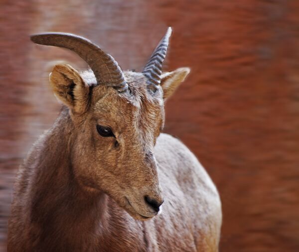 Уши сравнительно малы. Самцы имеют тяжелые и массивные рога, загибающиеся более или менее пологой спиралью наружу. Их длина составляет около 110 см[2]. Масса рогов особо крупных самцов может достигать 14 кг — примерно столько же, сколько весят суммарно все остальные кости организма. Рога самок развиты всегда хорошо, но слабее, чем у самцов. При общей полусерповидной форме они резко расходятся в стороны.