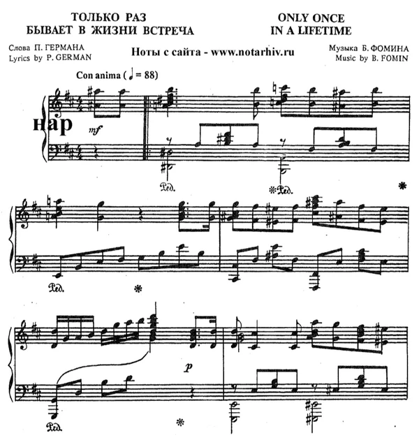 - Только раз бывает в жизни встреча. Нотный архив России. Дата обращения: 22 апреля 2025.