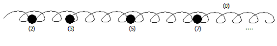 - Спектр содержит по одной точке для каждого простого числа, а также одну «общую точку» (точку, замыкание которой совпадает со всем пространством), соответствующую нулевому идеалу. Замкнутые множества в топологии Зарисского на этом спектре — это конечные подмножества множества простых чисел, а также весь спектр.