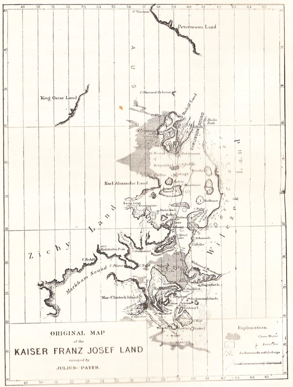 Архипелаг «Земля Франца-Иосифа» получил название в честь императора Австро-Венгрии Франца Иосифа I, название было дано в 1874 году первооткрывателями архипелага — руководителями австро-венгерской полярной экспедиции К.Вейпрехтом и Ю.Пайером[3]. Архипелаг состоит из 192 островов, крупнейшие из которых — Земля Георга (назван в честь Георга, принца Уэльского[4]), Земля Вильчека (назван в честь графа Ганса Вильчека — спонсора экспедиции Вейпрехта и Пайера[5]) и Греэм-Белл (назван в честь одного из основоположников телефонии А.Белла[6]). Во время первой мировой войны, когда из «патриотических» соображений Санкт-Петербург был переименован в Петроград, название «Земля Франца-Иосифа» оставалось неизменным и, таким образом, архипелаг продолжал носить имя главы государства, с которым Российская империя вела войну.
