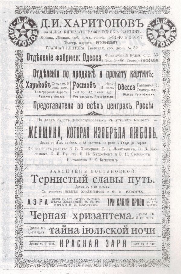 В 1918 году «Торговый дом Харитонова» переехал в Одессу, а затем — в Крым, где продолжало активно снимать фильмы.