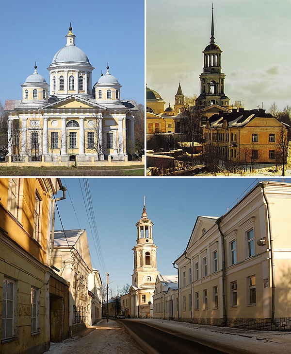 - Комплекс Борисоглебского монастыря, в который входят собор (1785—1796, архитектор Н. А. Львов), колокольня (1804 год, архитектор Ананьин) — классицизм; настоятельский корпус (1714 год), церкви XVII—XVIII веков