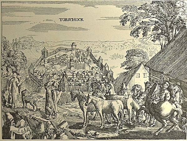 | Панорама Торжка из альбома австрийского дипломата и путешественника второй половины XVII века Августина Мейерберга |