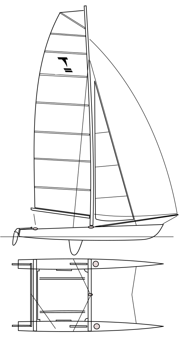 - В 2000 году параметры катамарана были существенным образом модифицированы. Изменения коснулись увеличения площади парусов, грота с 15,6 до 17,0 м², а стакселя с 5,4 до 7 м², добавлен геннакер 25,00 м² и трапеция для рулевого.