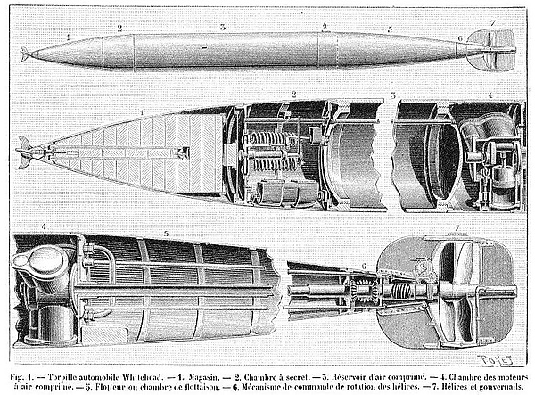 - Именно торпеда Уайтхеда была впервые в военно-морской истории применена в боевой обстановке: 29 мая 1877 года фрегат Её Величества «Шах» произвёл торпедный выстрел по перуанскому монитору «Эль Уаскар» во время битвы в бухте Пакоча.