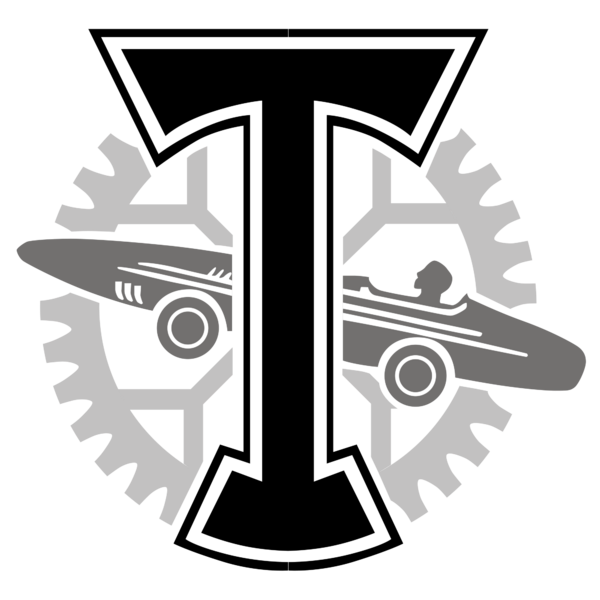 И я послушно беру лист бумаги и карандашом от руки вырисовываю, что мне подсказывает фантазия: автомобиль, конечно, типа гоночного, чтоб его обводы сами говорили о скорости; буква «Т» должна быть особенно красивой, она — центр композиции; а уж всё это обрамляет шестерёнка[26].
