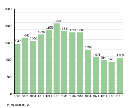 Население составляет 1118 человек (2008 г.), плотность населения составляет 112 чел./км². Занимает площадь 10 км². Почтовый индекс — 24050. Телефонный код — 0363.