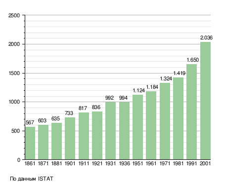 Население составляет 2030 человек, плотность населения составляет 1015 чел./км² (2008 г.). Занимает площадь 2 км². Почтовый индекс — 24060. Телефонный код — 035.