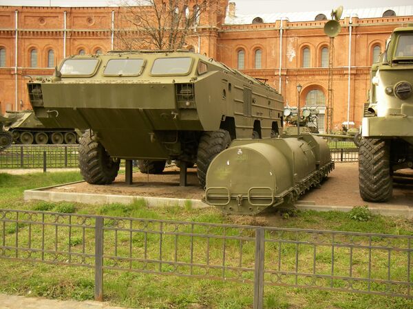 Пусковая установка смонтирована на трёхосном амфибийном автомобильном шасси БАЗ-5921. Передняя и задняя пары колёс — управляемые, что обеспечивает относительно небольшой радиус поворота — 7 метров. Состав аппаратуры пусковой установки обеспечивает возможность абсолютно автономного её применения, в её состав входят: