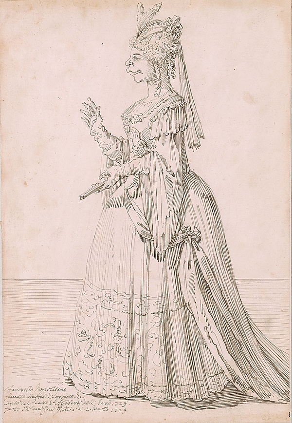Изображение женщин мужчинами-танцорами было очень распространено в придворном балете Ренессанса[16] и сохранялось в более поздние времена, хотя в основном ограничивалось комическими или зловещими женскими персонажами. Использование мужчин для всех женских ролей в балете сохранялось в Папской области до XVIII века, когда в других регионах Италии эти роли уже давно исполняли женщины. Аббат Жером Ришар, посетивший Рим в 1762 году, писал: «Женщинам-танцовщицам не разрешено выступать на сценах Рима. Их заменяют мальчики, одетые как женщины, и существует полицейское постановление, предписывающее им носить чёрные панталоны»[17]. Другой французский путешественник того же года, Жозеф-Тома, граф д’Эспиншаль, задавался вопросом: «Какое впечатление может произвести балет, в котором прима-балерина — переодетый юноша с искусственными женскими формами?»[17].