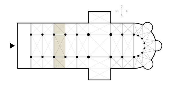 Траве́я[1] (фр. travée — пролет, ряд, лат. trabs — балка, деревянная кровля, пролёт) — в средневековой архитектуре стран Западной Европы — один пролёт, структурная секция внутреннего пространства храма. В постройках романского стиля, восходящего к композиции раннехристианских базилик, травея, как правило, ограничена четырьмя столбами, на которые опираются пяты арок главного и двух боковых нефов. В эту систему включаются и стены боковых нефов, принимающих на себя бóльшую часть нагрузки перекрытия. В развитой системе перекрытий храмов готического стиля на один пролёт главного нефа, перекрытого крестовым сводом, приходятся по два боковых, поскольку боковые нефы делали вдвое уже основного. Каждую травею, квадратную в плане, ограничивают четыре угловых опоры, а рёбра — нервюры — крестовых сводов оказываются параллельными. Большие диагональные арки, в отличие от стрельчатых боковых, или щёковых, остаются полуциркульными и называются ожива. Кроме того боковой распор арок передаётся на аркбутаны и контрфорсы, находящиеся снаружи и отстоящие от боковых стен. Это придаёт наибольшую устойчивость всей постройке. Такую конструкцию называют «связанной системой». Особый ритм внутреннего пространства храма создаётся мерным шагом центральных и боковых столпов и аркад. При уравнивании высоты всех трёх нефов и наличии больших витражных окон в освобождённых от нагрузки стенах внутреннее пространство храма воспринимается светлым и просторным. Такой тип храма принято называть зальным[2][3].