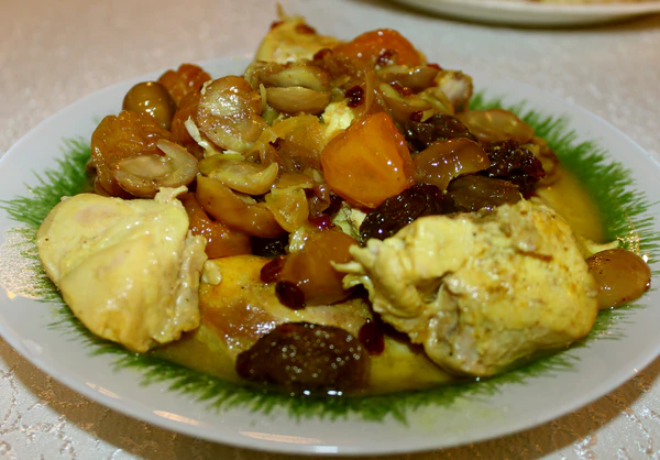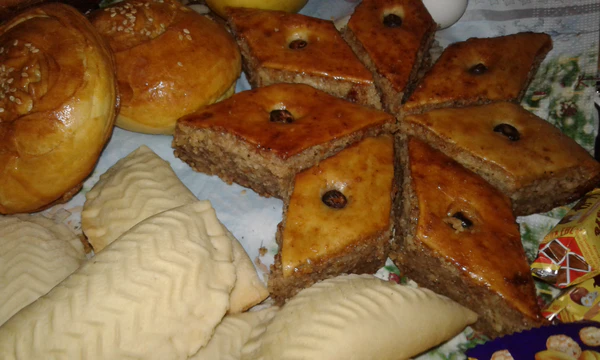 Традиционными блюдами, которыми угощаются обычно гости, являются «аш» (плов), причем имеются очень много разновидностей, «долма» и «кабаб» (шашлык), если на даче или в доме с двором.