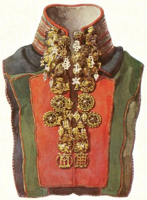 В XIX в. у саамов сохранялась глухая наплечная одежда, одинаковая для мужчин и женщин.