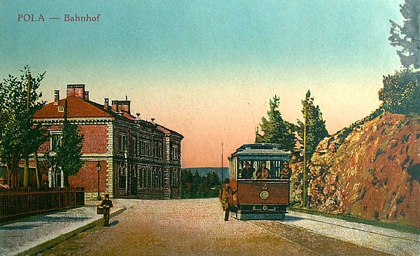 Трамвай в австрийском городе Пула был пущен 14 марта 1904 года. Имелось две линии. Первая шла от железнодорожной станции до цементного завода, где находилось депо, через побережье. Вторая линия шла от казино «Marina» через вокзал в центр города. Позже была построена третья линия, которая проходила от городской арены до леса сиана.