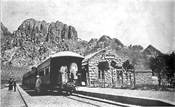Аргентинская часть Трансандинской дороги, начавшись в Мендосе и миновав два разъезда, выходила к станции Качеута, возле которой размещались элитарные термальные источники «Termas de Cacheuta» и была выстроена курортная гостиница. За Качеутой линию проложили через очередные два разъезда к станции и посёлку Успальята, который служил перекрёстком гужевых дорог, пересекавших Анды.