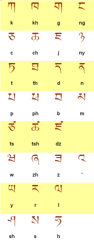 | Инициаль | Вайли | Транскрипция | Дакчха |