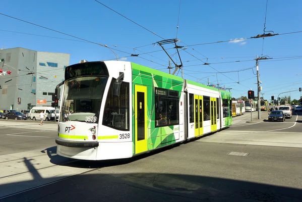 Мельбурн имеет самую большую в мире трамвайную сеть, насчитывающую 250 километров (160 миль) полотна, около 500 трамваев на 24 маршрутах и 1763 трамвайных остановок, находящихся под управлением компании Keolis Downer. Также существует два маршрута легкорельсового транспорта. Большая часть трамвайных путей сосуществует с плотным потоком иных транспортных средств, что делает трамвайную сеть Мельбурна одной из самых медленных в мире[39]. Трамваи обеспечивают сообщение преимущественно во внутренних пригородах и, как правило, осуществляют короткие и средние поездки. В центре города действует бесплатный маршрут City Circle, на котором курсируют старинные трамваи компании Colonial Tramcar Restaurant[40].